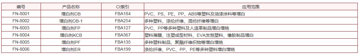 該類熒光增白劑,適用于造紙、洗滌劑、塑料、涂料、化纖等行業的增白增艷。